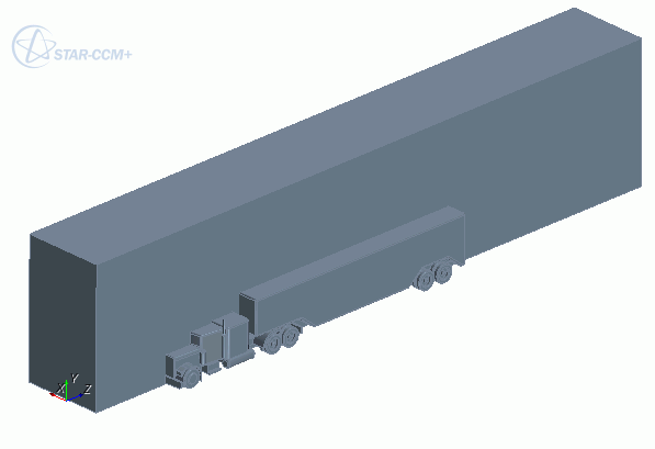 在以下示例中,将抽取环绕卡车和拖车的流体域。对于此示例,有意使用了较小的流体域尺寸。由于该案例对称,因此该案例的准确建模仅需一半卡车(和流体域)。