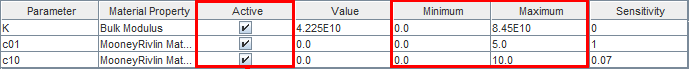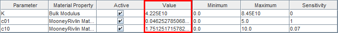 - Young's Modulus, Bulk Modulus, and Neo-Hookean Material Parameters (c10) are positive (> 0).