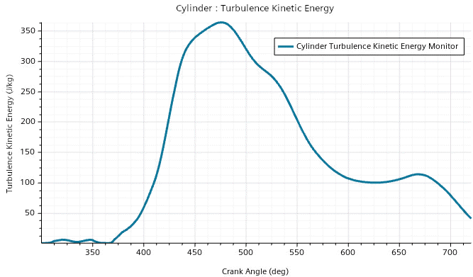 在 720 度曲柄角度的起火点,湍动能值为 40.63439 J/kg。