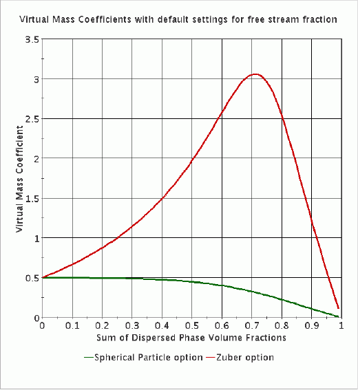 (2005)(2006)理论上“自由流”分数的默认值为 。 这使得 Zuber 虚拟质量系数在应用限制前,可表示有效范围 中,总颗粒浓度对虚拟质量力的影响。