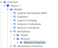 材料属性节点是整个流体混合物的整体材料属性的管理器节点,这种属性不同于每个个体组分的属性。此节点开始时为空,但是一旦选择了其他物理模型,则将由材料属性节点填充。混合物的材料属性可以按照设置材料属性中所述来设置。