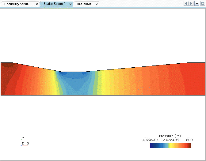 运行模拟 模拟准备现已结束,可以运行模拟。 单击求解工具栏中的 (初始化求解)。 单击求解工具栏中的 (运行)。 在模拟运行过程中,选择图形窗口顶部的标量场景 1 选项卡以可视化求解。 当模拟完成运行时保存模拟。 标量场景显示如下: