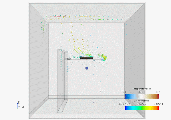 以下屏幕截图显示了机箱内气流状态和封装温度。