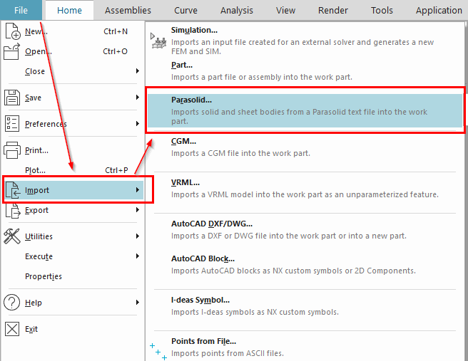 在 Import Parasolid File(导入 Parasolid 文件) 对话框中: