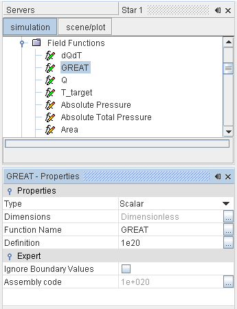 例如,可以使用 或 的最大局部值的 1000 倍,其中 为网格单元中的质量流率, 为比热, 为网格单元体积, 为导热率, 为某种网格单元特征长度。 在此示例中,GREAT(大) 设为 1e20。