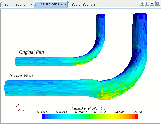 标量包面在输入零部件的表面上,沿点法向矢量(数量与标量值相同)与比例因子的乘积移动点坐标。