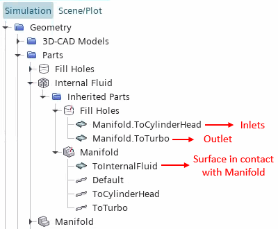To visualize the extracted fluid volume, you can add the surfaces of the Internal Fluid part to a geometry scene.