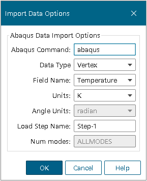 CAE 求解数据以单独的步骤导入模型。本教程要求从 Abaqus 导入温度数据。