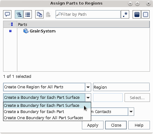 在将部件分配给区域对话框中,请确定已选择 GrainSystem,并将第二个下拉列表设为。