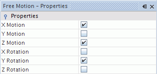 虽然创建 6 自由度体时已配有自由运动选项,但仍需要为体指定可以使用的移动方式。 在本例中,该体可以沿 X 轴向自由平移(浪涌),沿 Z 轴向自自平移(升降),围绕 Y 轴自由旋转(俯仰)。