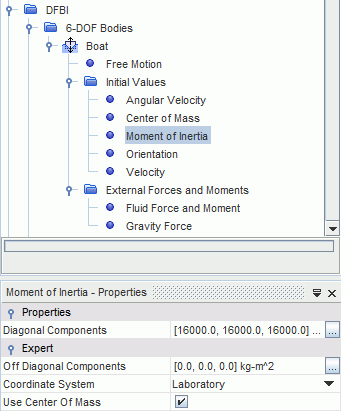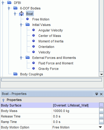 当创建相关的 DFBI 运动对象并将其分配给液体区域时,6 自由度运动求解器被激活。 本教程需要 DFBI 旋转和平移运动。
