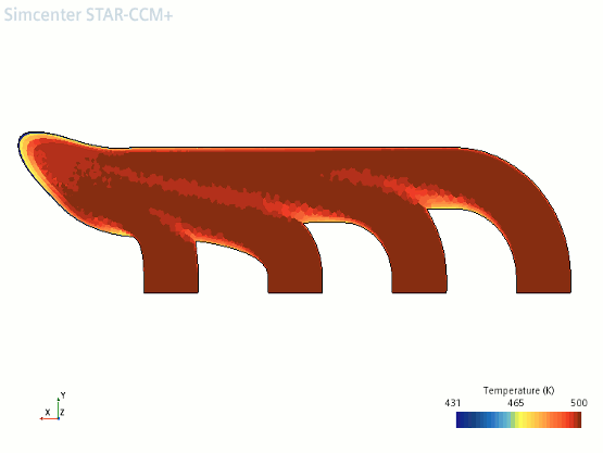Simcenter STAR-CCM+ 模拟使用作为边界条件的已导入温度数据来运行。