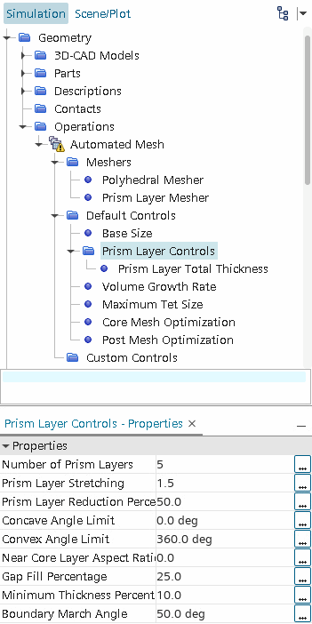 If you remove the Prism Layer Mesher from an Automated Mesh operation, Simcenter STAR-CCM+ saves any user-defined settings and restores them if you reactivate the Prism Layer Mesher.