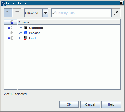 现在您可创建一个显示燃料、包覆层的温度和冷却剂蒸气体积分数的标量场景。运行求解期间可监测两个场函数。