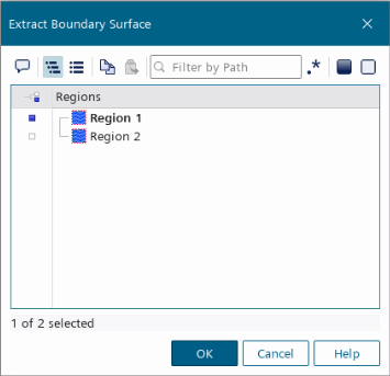 - 在抽取边界表面对话框中,选择所需的区域。