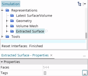 该过程完成后,模拟树中将显示一个名为 的新表示。每个已抽取表面表示均包含选定区域的一个闭合面网格