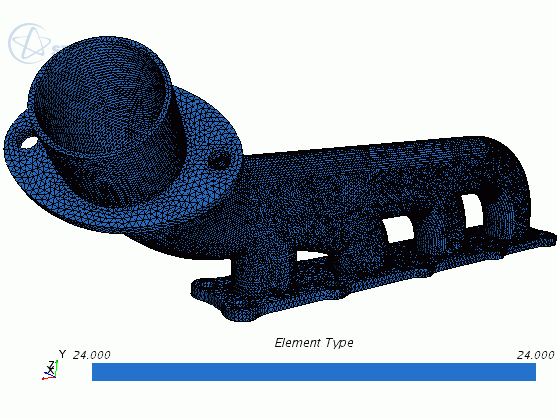 为歧管生成四面体元素网格。要提高求解的精度,可为四节点元素添加中间边节点,以生成二次 Tet10(四面 10 节点)元素。