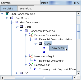 要将单个物质添加到成分,可右键单击原子节点,然后从弹出菜单中选择新建原子。