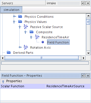 选择场函数节点,然后将其标量函数属性设为 ResidenceTimeAirSource(空气停留时间源),这是定义的场函数。