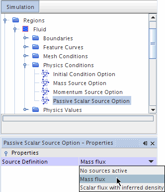 选择节点,然后为源定义选择质量通量。(请参见被动标量属性。)