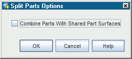 - 如果要根据表面拓扑分割零部件,但同时组合共享零部件表面的零部件,则在显示的分割零部件选项对话框中,激活组合共享零部件表面的零部件。