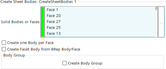 - To create a single sheet body for all faces, deactivate the Create one Body per Face option. This option is deactivated by default.