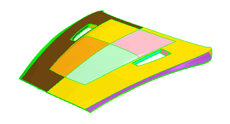 Depending on the option you choose, a single sheet body or multiple sheet bodies are created and placed in the Body Groups manager node. A CreateSheetBodies feature node is added to the feature tree.