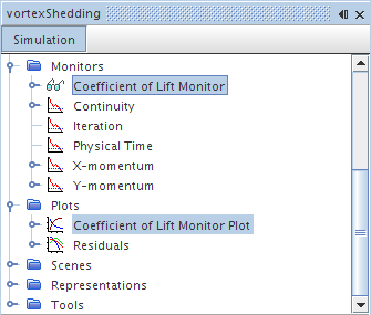 监测圆柱体壁面受到的升力,以确定涡流脱落的振荡周期。