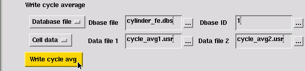 - 指定 .dbs 和两个 .usr 文件的文件名,将数据库 ID 设为 1,然后单击 Write cycle avg(写入循环平均)。CAE 模型 (.dbs) 和求解数据 (.usr) 位于当前工作目录中。