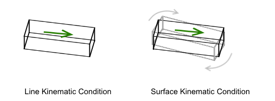 运动条件设置将对具有自由表面边界的区域中的网格单元施加约束,以限制网格单元可在自由表面边界的面上移动和更改形状的方式。线运动条件仅适用于定向网格化的情况,而表面运动条件则可使用所有网格类型,但不太适用于拉伸区域中的角。