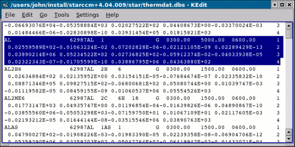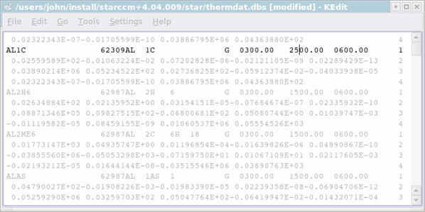 Chemkin 数据库文件实质上是文本文件,可以使用任何文本编辑器进行修改。