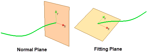 | Fitting Plane | The plane is created planar to the input curve. The image below shows an example for Normal Plane and Fitting Plane. ![]() | |