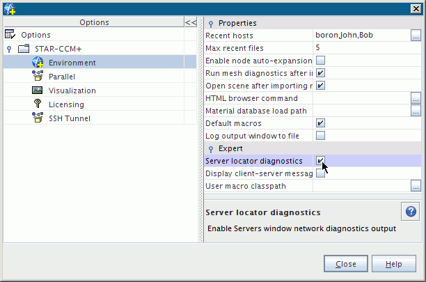 要使服务器定位器可用,选择。 这会激活选项对话框。