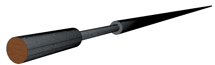 要学习本教程,首先加载包含圆柱燃烧器几何的模拟文件,其中包含使用网格划分操作生成体网格(已设置)的圆柱燃烧器几何体。要提供声学模态分析的输入内容,则使用涡破碎模型运行准备完全的稳态燃烧模拟。