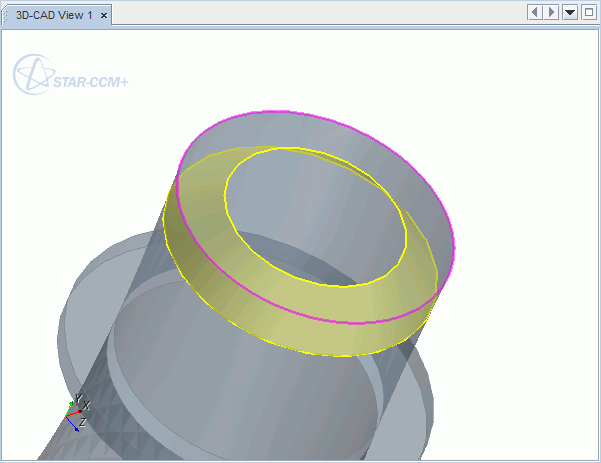 - 在 3D-CAD 视图窗口中选择任何额外的边和面。要更轻松地选择面或边,使用“选择过滤器”。(请参见过滤选择。)可通过按住 <Ctrl> 键一次选择多个边/面。