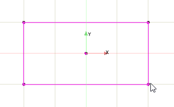 ![]() (Center Point Rectangle) | A center point rectangle is created around a center point and maintains its symmetry around the selected point. To create a center point rectangle, you require two clicks: the first defines the center point and the second defines the length and width of the rectangle. The rectangle is automatically created with the constraints required for symmetry. ![]() |