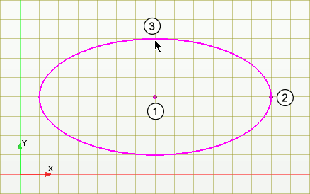 ![]() (Ellipse) | An ellipse is a closed loop in the shape of an oval or flattened circle. To create an ellipse, you require three mouse clicks: one to set the center of the ellipse, followed by two further clicks to define the minor and major radii. You can create an elliptical arc by splitting and trimming an ellipse. It is possible to apply minor and major radius dimensions by right-clicking on the sketch and selecting Apply Minor Radius or Apply Major Radius. ![]() |