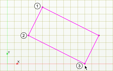 ![]() (Three-Point Rectangle) | A three-point rectangle can be oriented in any direction. To create this type of rectangle, you require three clicks: the first two clicks set the length and orientation of the rectangle; the third click sets the width. The rectangle is automatically constrained with perpendicular and parallel constraints. ![]() |