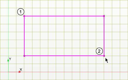 ![]() (Rectangle) | A rectangle is constrained to be aligned with the X and Y-axis directions on the sketch plane. To create a rectangle, you require two mouse clicks: one to define the location of the first corner and the second to define the opposite corner. Rectangles are automatically constrained so that one set of opposite lines is horizontal, and the other is vertical. ![]() |
