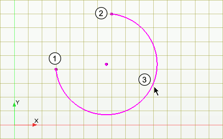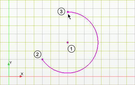 ![]() (Three-Point Circular Arc) | A circular arc is a segment of a circle. To create a three-point circular arc, you require three mouse clicks: the first two clicks set the start and end points of the arc, and the third click sets the radius of the arc. Simcenter STAR-CCM+ provides a function that converts and arc into its complement. This function is useful when the original arc is drawn in the opposite direction to the one that you require. See Converting an Arc Into its Complement. ![]() |