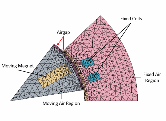 电机模拟要求不同组件之间的交界面处有共形网格。空气间隙网格重构是一种网格化方法,可用于在相对运动的两个区域之间生成和保持共形网格。