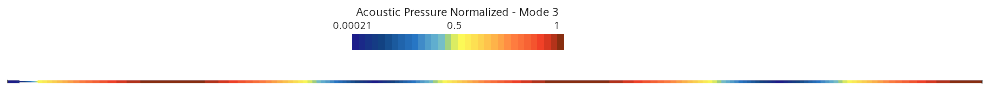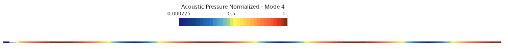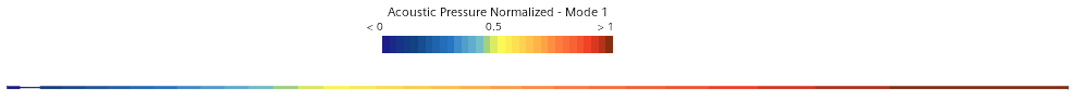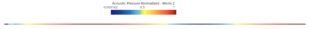 标量场函数 标准化声学压力 - 选择节点,并从 1 到 6 编辑声学模态的值。标准化声学压力标量场景中的图像显示中间面部分所有 6 个声学模态的标准化声学压力(声学压力从 0-1 变化)。以下图像显示模态 1-6:模态 1: