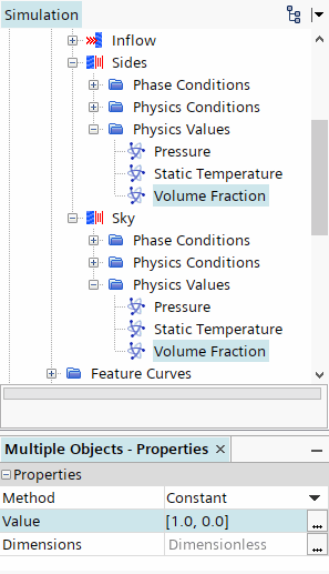 节点 属性 设置 速度幅值 值 5 m/s 体积分数 值 [0.0, 1.0] -