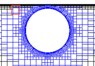 - 首先,分析重叠网格交界面周围的网格单元尺寸比。当比率约为 1 时,不需要 AMR。否则,打开重叠 AMR 模型以免网格单元不匹配:
