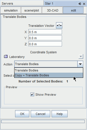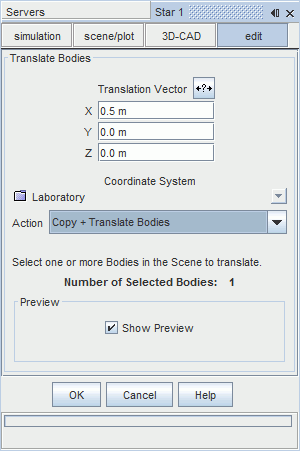 在转换操作期间创建副本 使用复制选项,无需在转换体之前对其进行复制。 每个转换特征面板都包含操作下拉列表,用于创建原始体的副本并转换该副本,从而保留原始体。 默认情况下,会转换原始体。 以下示例演示了复制选项的工作方式。 要将体的副本在 X 方向上平移 0.5 m。 下面是此操作的结果。 原始体未移动,转换操作平移的是原始体的副本。