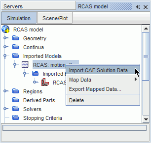 右键单击导入的 RCAS 模型节点,然后选择导入 CAE 求解数据...