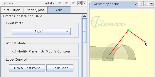 要开始创建环,在平面工具上单击一次以定义第一个点。 随后每在平面中单击一次,都会在上一个点和新点之间绘制一条线,从而绘制出边界环。