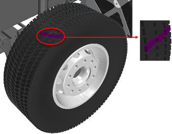 原始模型包括轮胎上每个胎面的几何。假设这些不会对流量造成不适当的影响,可以使用 3D-CAD 搜索工具自动选择所有胎面凸起。选择凸起后,可以使用去特征工具将其移除。