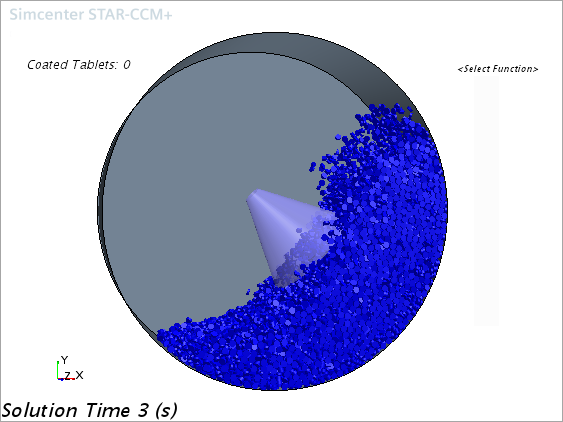 旋转三秒后,场景显示滚筒中的圆柱形颗粒。 片剂达到平衡状态。