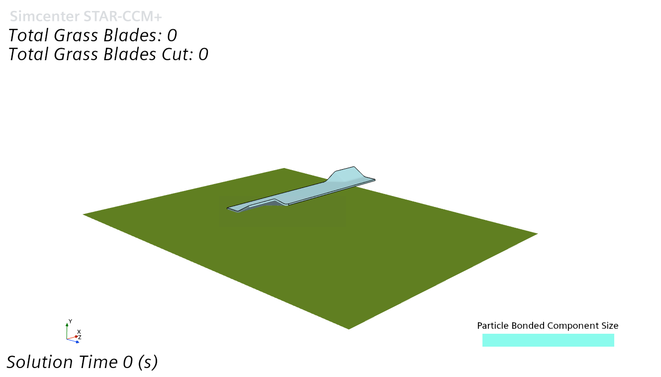 创建可视化场景,其中显示以段长着色的草叶。可视化场景还带有注释,用于显示模拟中喷射和切割的总草叶数。要创建割草机叶片切割草叶的动画,则设置求解历史文件。设置直方图,以研究割草机切割草叶时草叶段长度的变化。为了方便起见,已在起始文件中对喷射和切割的草叶总数创建可视化场景和报告,但需要完成设置。您将创建并设置求解历史文件和直方图。